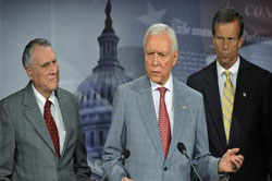 Senate Republicans boycotted a preliminary hearing on free trade agreements with South Korea, Colombia and Panama.