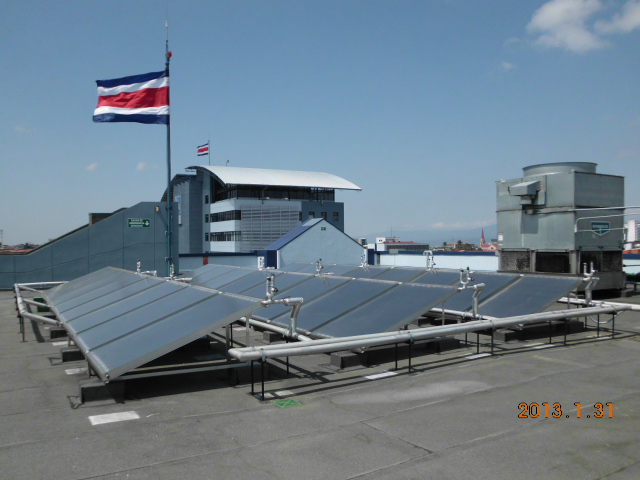 Hace tres años se colocaron 24 paneles solares en los techos. El sistema opera con una bomba que captura el calor y almacena el agua, para precalentarla antes de entrar a los tanques de agua caliente, lo que provee una manera simple y efectiva de transformar la energía solar y permite el ahorro de diez toneladas de CO2 al año.