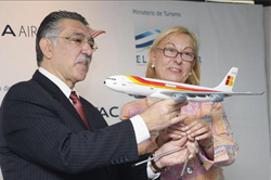 "América Latina está teniendo un crecimiento importante; toda el área, incluyendo Centroamérica,", afirmó la directora de ventas de Iberia al presentar la ruta San Salvador-Madrid.